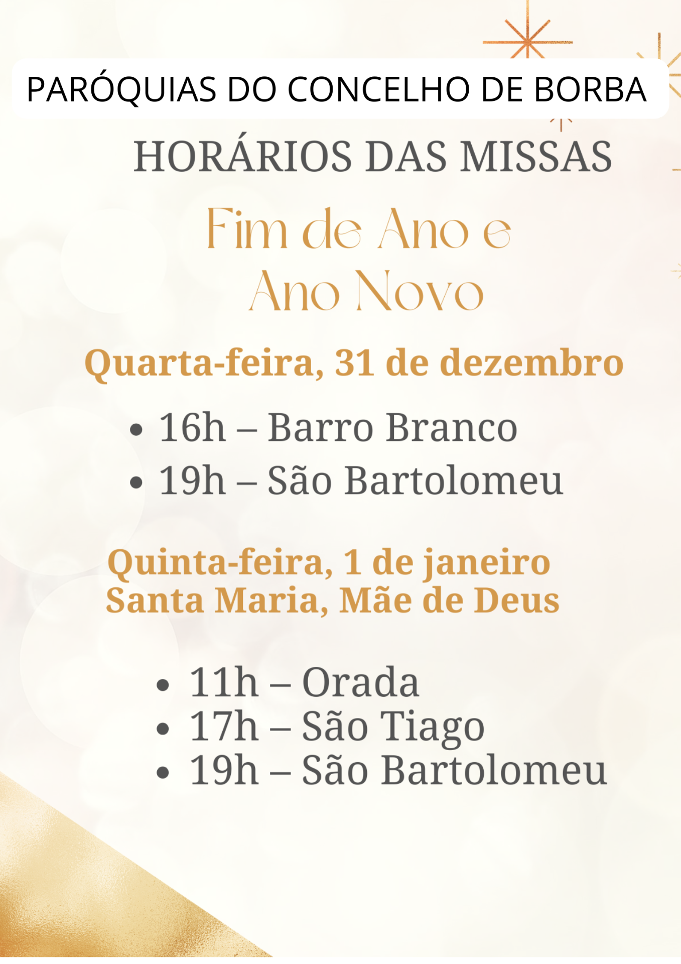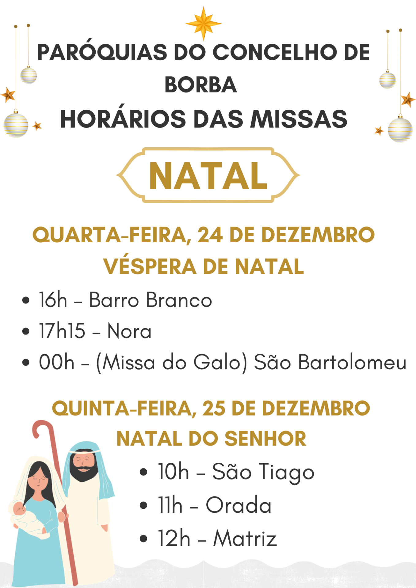 NOTA: Nas igrejas da Nora e da Orada reza-se o terço meia hora antes da missa.